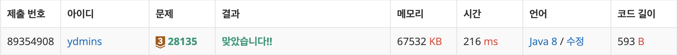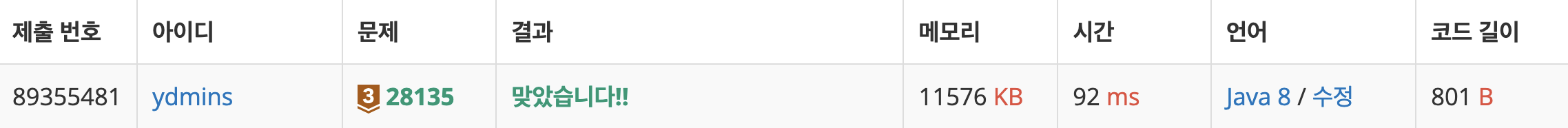 - 단점 : 하지만 숫자를 매번 String으로 변한하고, 문자열 하나하나를 비교하는 contains() 메서드를 사용하는 건 비효율적이다. (contains()때문에 시간복잡도는 실은 $$ O(Nlog(N)) $$였던 것 같다.