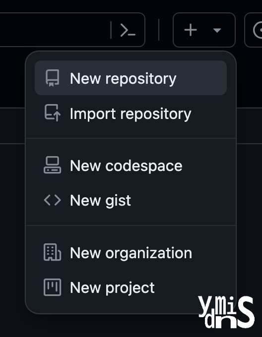 깃헙 메인피이지는 하나의 깃헙 계정당 딱 하나의 공간에 생성할 수 있다. 일단 자신의 깃헙에 로그인 한 후 왼쪽 상단에 위치한 + 버튼을 눌러준다.