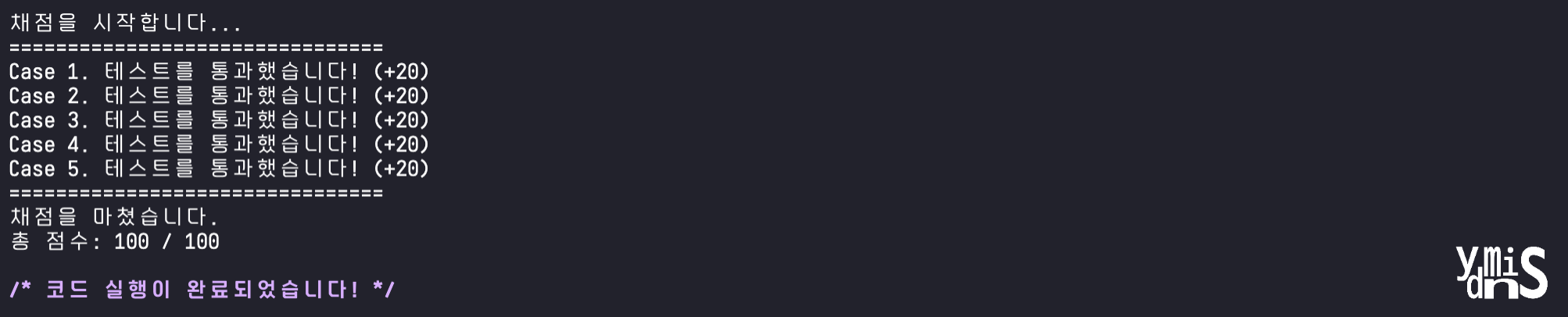 Case 1이 실패한 모습이다.모든 케이스가 성공한 모습이다.